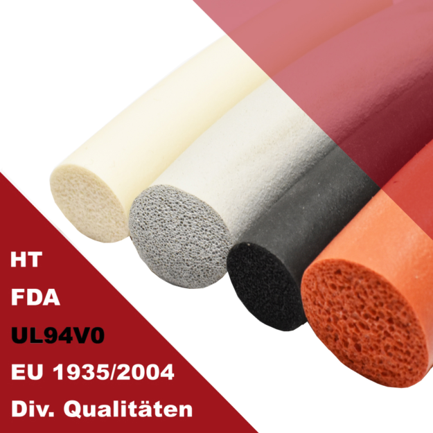 Original HokoSOFT® Silikonschaum-Produkte / Silikonschaumdichtungen HokoSOFT® Silikonschaumdichtungen in diversen Qualitäten – mit Lebensmittelzulassung / lebensmittelecht (FDA § 177.2600 / EU 1935/2004, KTW, BfR), hochtemperaturbeständig uvm. in unterschiedlichen Härten und Farben.